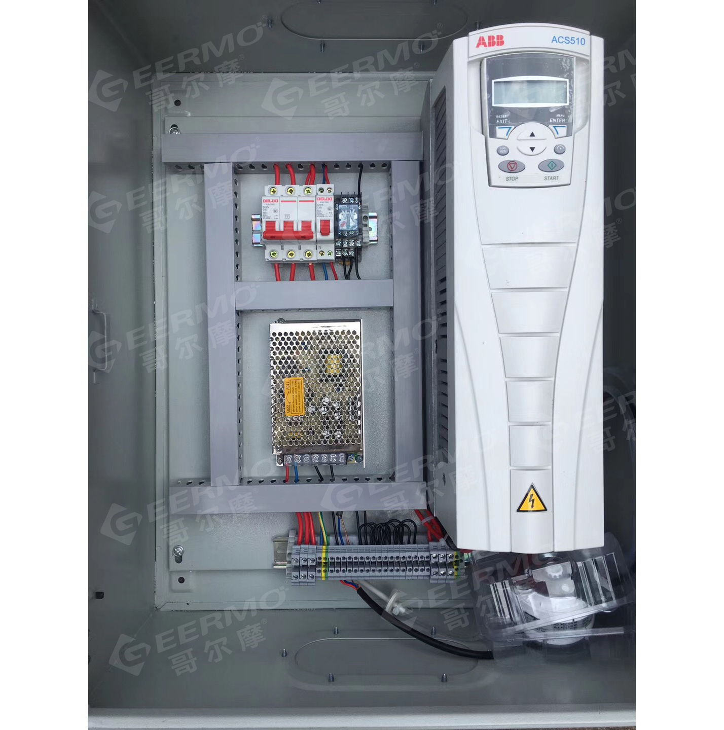 通過對智能控制器的控制來改變變頻器的頻率輸出,不同的頻率控制著風機不同的轉速,從而*終起到調節風量的目的。其中,智能控制器起到把不同樓層的不同的通風柜傳輸過來的信息,經過綜合運算后,輸出信號給變頻器,變頻器輸出不同頻率來控制風機。