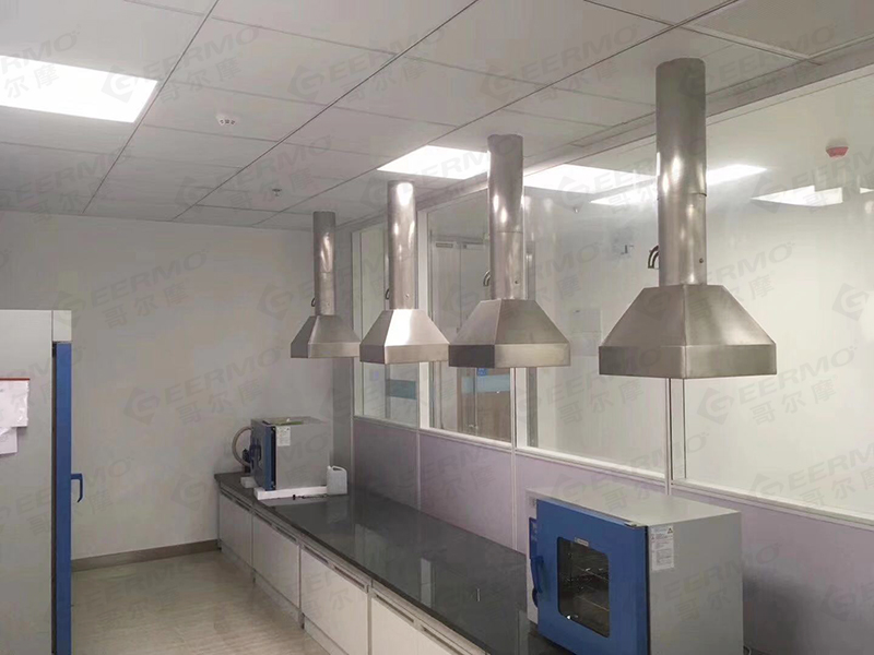 實驗室通風要求新風全部來自室外,然后100%排出室外,通風柜的排氣不在室內循環。化學實驗室換氣要求每小時大于10次,物理實驗室每小時大于10次,實驗室無人時換氣可減少為6次。實驗室通風柜設計數量要足夠,并且不作為唯一的室內排風裝置,儀器室或產生危險物質的儀器上方設局部排風系統。